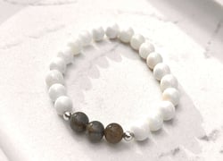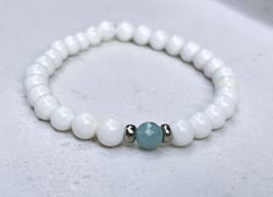 Weiß ist die Farbe der Reinheit und perfekt für den Sommer! Entdecke diese bezaubernden Armbänder mit Perlmutt und trage das Meer an deinem Handgelenk - für Ruhe, Schutz und Selbstvertrauen. Mit diesen Schmuckstücken wird dein Outfit perfekt, denn es sind auch edle Accessoires. Jedes Armband ist liebevoll handgefertigt. Für die Armbänder wurden weiße Perlmutt Perlen mit Edelsteinen wie blauer Amazonit, schillernder Labradorit oder rosa Andenopal kombiniert.