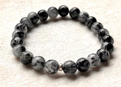 Turmalinquarz ist Bergkristall/Quarz mit Turmalin-Einschlüssen – dadurch entstehen die typischen schwarz-grauen Linien und Strukturen. Eine weitere Variante des Edelsteins ist grüner Turmalinquarz. Jedes Armband ist ein Unikat und wirkt dadurch ein bisschen anders: mal feiner, mal kontrastreicher – immer natürlich und einzigartig.