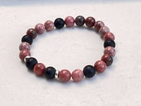Edelsteine: Achat, Jaspis, Granat, Rubin, Hämatit, Obsidian, Onyx, Rhodonit, Rauchquarz, rote Koralle, schwarzer Turmalin, Turmalinquarz