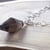 Der dunkelbraune Edelstein ist rhombenförmig geschliffen und mit einer Silberkappe verziert.