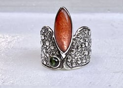 Die Edelsteine in unseren Ringen – darunter Amethyst, Citrin, Aquamarin, Regenbogen-Mondstein, Blautopas, Peridot, Zitronenquarz sowie rosa und grüner Turmalin – begeistern durch ihre lebendigen Farben, einzigartigen Formen und hohen Qualität. Jeder Stein wird sorgfältig ausgewählt und hat seine eigene besondere Energie. Es werden klare und reine Edelsteine in Juwelierqualität verwendet.
